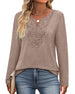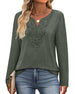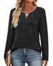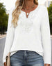 SPÉCIFICATIONS Type de la veste: Chemisiers Style: Décontracté Matériel: Mélange de coton, Dentelle Occasion: Quotidien Forme du col: Col en V Type du dessin: Couleur pure Type de la manche: Manches bouffantes Longueur de la manche: Manches 3/4 Type d'ajustement: Habituel Saison: Printemps, Été, Automne Détails: Couture de matériau, Évider Co...