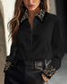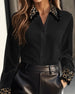Chemise Scintillante À Col À Revers Et Manches Longues