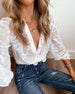 SPÉCIFICATIONS Type de la veste: Hauts Style: Décontracté Matériel: Mélange de coton,Dentelle Occasion: Quotidien Forme du col: Col en V Type du dessin: Couleur pure Type de la manche: Manches à gigot Longueur de la manche: Manches longues Type d'ajustement: Habituel Saison: Printemps,Automne Contenu du colis: 1 x Haut TABLEAU DES TAILLES (cm)...