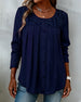 SPÉCIFICATIONS Type de la veste: Chemise/Chemisier Style: Décontracté Matériel: Mélange de coton Occasion: Quotidien Forme du col: Col de poupée Type du dessin: Couleur pure Type de la manche: Manches régulières Longueur de la manche: Manches longues Type d'ajustement: Habituel Saison: Printemps,Automne Détails: Boutons,Dentelle Contenu du col...