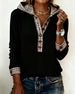 Sweat à Capuche Avec Design à Col Boutonné, Motif à Carreaux, Détail Patchwork Et Tissu En Velours