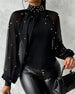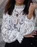 Blouse Sexy Transparent Manches Longues Col Montant Dentelle