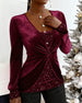 Haut À Col Drapé En Velours À Paillettes