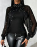 Blouse Manches Lanterne À Sequins Imprimé Léopard