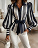 SPÉCIFICATIONS Type de la veste: Chemisiers Style: Décontracté Matériel: Mélange de coton Occasion: Quotidien Forme du col: Col à revers Type du dessin: Rayure Type de la manche: Manches bouffantes Longueur de la manche: Manches longues Type d'ajustement: Habituel Saison: Automne,Hiver Détails: Lacet Contenu du colis: 1 x Chemisier TABLEAU DES...
