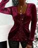 SPÉCIFICATIONS Type de la veste: Hauts Style: Décontracté Matériel: Mélange de coton Occasion: Quotidien Forme du col: Col en V Type du dessin: Paillettes Type de la manche: Manches régulières Longueur de la manche: Manches longues Type d'ajustement: Habituel Saison: Automne,Hiver Contenu du colis: 1 x Haut TABLEAU DES TAILLES (cm) Taille To...