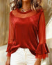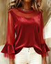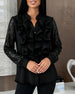Blouse Élégante À Manches À Volants Et Nœud Papillon