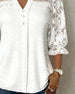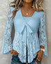 SPÉCIFICATIONS Type de la veste: Chemisiers Style: Chic Matériel: Mélange de coton Occasion: Quotidien Forme du col: Col en V Type du dessin: Couleur pure Type de la manche: Manches évasées Longueur de la manche: Manches 3/4 Type d'ajustement: Habituel Saison: Automne,Hiver Détails: Évider,Dentelle Contenu du colis: 1 x Chemisier TABLEAU DES T...