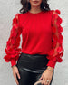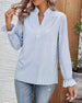 Blouse Manches Mi-Longues À Volants Couleur Unie Décontractée