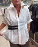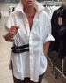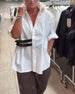 SPÉCIFICATIONS Type de la veste: Chemise/Chemisier Style: Chic Matériel: Mélange de coton Occasion: Quotidien,Travailler Forme du col: Col de chemise Type du dessin: Couleur pure Type de la manche: Manches d'épaule tombées Longueur de la manche: Manches longues Type d'ajustement: Habituel Saison: Automne,Hiver Détails: Boucle,Boutons Contenu d...