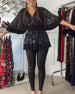 Robe nuisette en dentelle brodée de papillons et de fleurs
