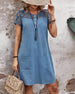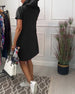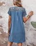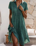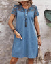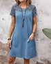 Robe de poche de couleur unie avec manches courtes en dentelle creuse