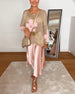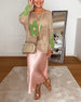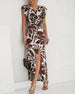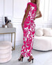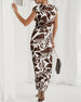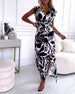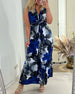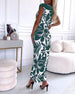 Robe coupe slim sans manches avec fente imprimée feuilles et plissée