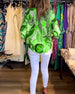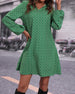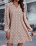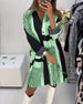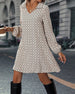 Robe trapèze élégante à manches bouffantes en V profond et imprimé feuilles