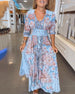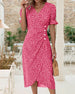 SPÉCIFICATIONS Style: Élégant Matériel: 3% Élasthanne,97% Fibre polyester Type de la robe: A-Line Longueur de la robe: Midi Forme du col: Col en V Type du dessin: Fleurs, Impression Type de la manche: Manches bouffantes Longueur de la manche: Manches courtes Détails: Boutons, Fente Type d'ajustement: Habituel Saison: Printemps, Été, Automne O...