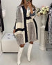 SPÉCIFICATIONS Style: Décontracté, Chic Matériel: Élasthanne, Fibre polyester Type de la robe: Robe jambe droite Longueur de la robe: Midi Forme du col: Col en V Type du dessin: Impression Type de la manche: Manches régulières Longueur de la manche: Manches longues Détails: Poche, Boutons Type d'ajustement: Habituel Saison: Printemps, Automn...